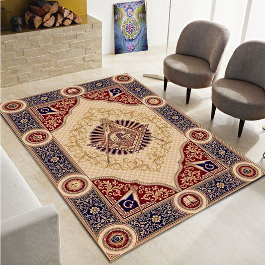 1pc 3D Printing Freemasonry Carpet Fashion Decorative Rug Applicable To The Living Room Bedroom Corridor Mat Bed Area Non-slip Flooring Mat