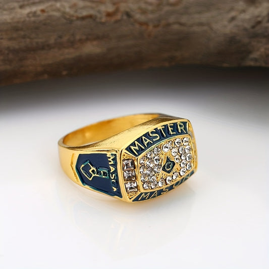 1pc Men's Fashion Freemasonry Logo White Zircon Ring For Wedding Engagement Party