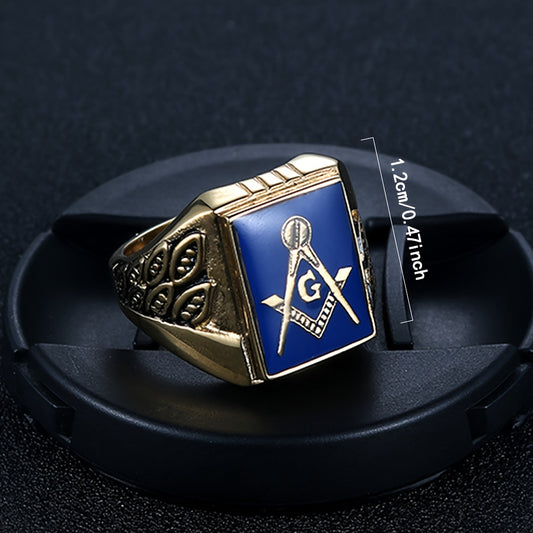 1pc Fashion Religious Titanium Steel Masonic Ring, Punk Retro Men's Ring Finger Ring