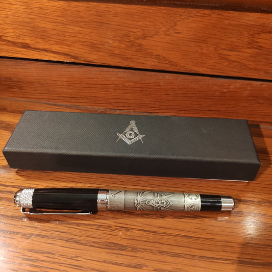 1pc Engraved Masonic Symbols Heavy Weight Ancient Silver Masonic Metal Fountain Pen With Gift Box
